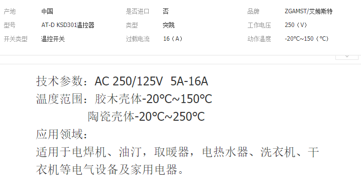 温控器/过热保护器/限温器/温度控制器/温控开关/电热水器温控器