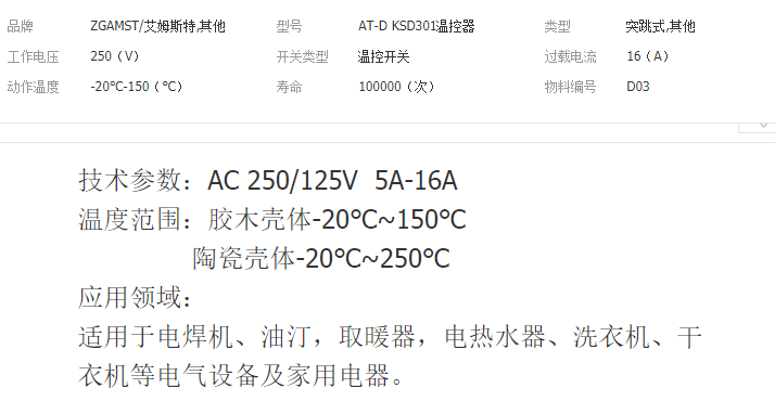 温控器/过热保护器/限温器/温度控制器/温控开关/热水器温控器
