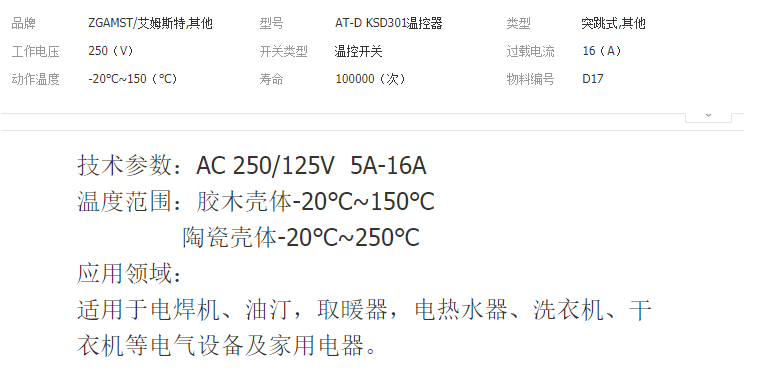 汽车温控器/热保护器/限温器/温度控制器/温控开关