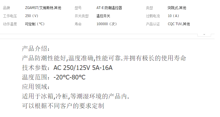 温控器/冰箱温控器/冰柜温控开关/低温温控器/防水温控/温控开关